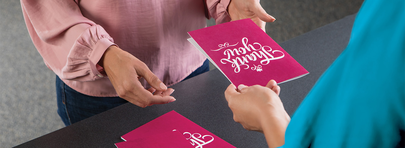 The UPS Store® can help you make your own cards for thank-yous to employees and clients, invites for customers or clients to open house events, birthday wishes and holiday cards with a coupon inside. Custom greeting cards are easier than ever.
